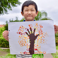 We made an Autumn Tree with our hand print and paper roll stamps to simulate the leaves. Hicimos un Árbol de Otoño con nuestra forma de la mano y con sello de papel simulamos las hojas. 手型とスタンプで秋の木を描きました。