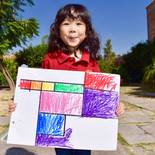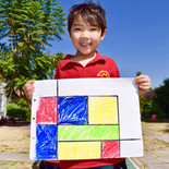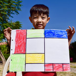 K2 & K3 Piet Mondrian Painting: We used the 3 primary colors and green. Pintura de Piet Mondrian: Usamos los 3 colores primarios y verde.ピエトモンドリアンの絵:緑と3原色を使って上手に塗りました。