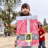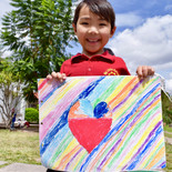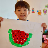 K2&K3 We made a watermelon with crepe paper and paint. Hicimos una sandía con papel crepé y pintura. ちりめん紙の貼り絵でスイカを作りました。
