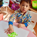 Babies & K1 We made a flower with our hands with paint. Hicimos flores con nuestras manos llenas de pinturas. 手型でお花を作りました。ペタペタ手型を押して楽しかったね!
