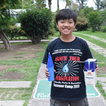 朝の英語の授業では、人称代名詞(主格)と動詞 (sing, eat, sleep, dance, play, jump, read and writeなど)を習いました。バッチリ覚えたら、園庭に出て動詞の活用ゲームをしました。代名詞チームと動詞チームの2つに分かれて、先生から代名詞と動詞を自分の代名詞か動詞のカードを1枚受け取りました。先生が「I read」のように文を言ったら、カードを持っている人が急いで風船にタッチしに行きます。もう一つのチームに負けないように先生の言う英語をよく聞いていました。今度は教室に戻って、先生が言った英文をチームの代表がホワイトボードに書いて競争しました。